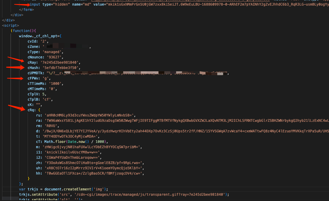 页面内容 需要获取 _cf_chl_opt 这个中的部分值