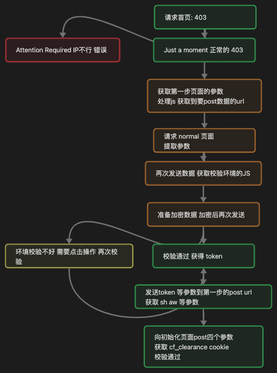 拿到最后的 cf_clearance cookie 就是验证通过了